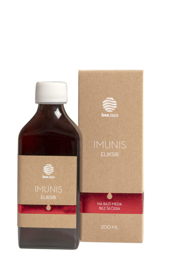 IMUNIS eliksir na bazi meda,matične mliječi, soka od cvekle i propolisa. Jača imunitet, pomaže kod depresije, iscrpljenosti, nedostatka apetita, rada jetre, loše krvne slike i rada želuca.